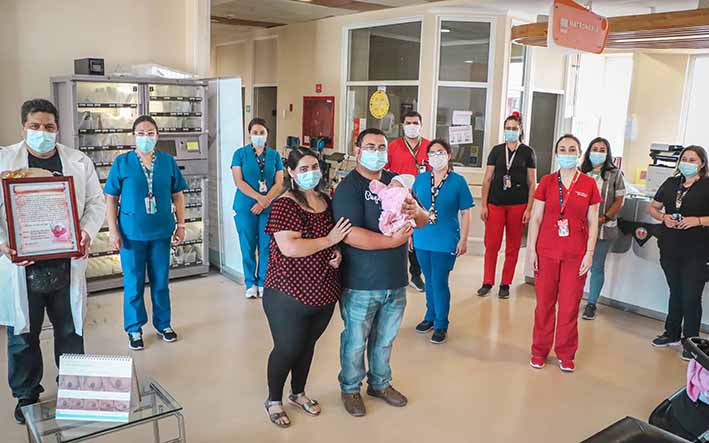 "Nació midiendo 34 centímetros y pesando un kilo 27 gramos. Por ser prematura fue hospitalizada dos meses, mientras yo tuve que quedarme un mes más. Me acuerdo que los médicos nunca me dejaron sola, me apoyaron las Tens, nutricionistas, auxiliares, matrones, todo el equipo. Por eso habiendo pasado un par de meses de que naciera Esperanza, teníamos que venir hasta acá", sostuvo Catherine recorriendo el centro hospitalario junto a su esposo para destacar al equipo de salud a través de un presente. "Es bueno reconocer el profesionalismo de los funcionarios de esta unidad, destacar su buen trabajo, al mismo tiempo motivarlos a que sigan así, mejorando cada día. Lo mismo a aquellas mujeres que están viviendo una experiencia cercana a la nuestra, para que no pierdan la fe, porque lo que pasó conmigo también es posible para ellas", destacó contenta la nueva mamá.