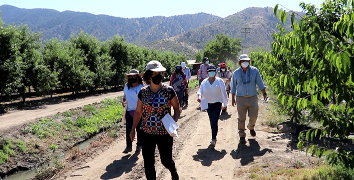Director regional de Corfo O'Higgins, Emiliano Orueta junto a la Directora de Programas Tecnológicos de Corfo, Macarena Aljaro además de la directora del Programa de Mejoramiento Genético (PMG) de Cerezos, Dra Marlene Ayala y la Coordinadora del Consorcio Tecnológico de la Fruta, María Fernanda Álvarez, visitaron el campo experimental ubicado este programa, a través del cual se busca desarrollar nuevas variedades de cerezas para Chile, que respondan a necesidades de mercados nacionales e internacionales, como también fortalecer a la industria frutícola nacional.