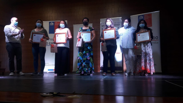 En la ceremonia realizada en dependencias del teatro municipal de la comuna, cada una de las beneficiarias recibió un certificado del programa Fosis, a la vez que la alcaldesa Gloria Paredes Valdés les entregó su saludo y palabras de agradecimiento a cada una de las familias por tener la confianza de haber trabajado con el municipio a través de la oficina de fomento productivo.
