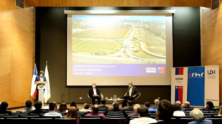 En dependencias del salón auditorio de la Universidad de O'Higgins, el Seremi de Obras Públicas, Moisés Saravia Ruiz y el director ejecutivo del Consejo de Políticas de Infraestructura, CPI, Carlos Cruz Lorenzen, presentaron el libro "Desarrollo de la Infraestructura Vial en la Región de O'Higgins: Presente y Futuro" elaborado por profesionales del MOP O'Higgins, el cual en casi 200 páginas describe diversos proyectos viales, estudios en desarrollo y sus siguientes etapas para los próximo 30 años. La actividad contó con la presencia del director nacional de Vialidad, Jaime Retamal, el presidente regional de la Cámara Chilena de la Construcción Rancagua, Juan Pablo Gramsch, el senador electo y actual diputado Juan Luis Castro, la diputada electa Marcela Riquelme, y la asistencia de alcaldes, consejeros regionales, representantes del mundo académico, empresarial y MOP O'Higgins.