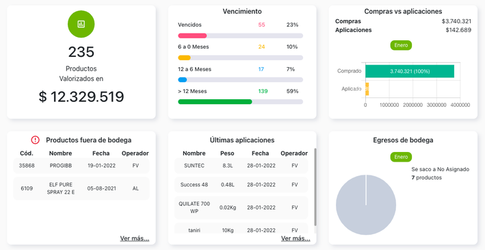 En este rubro, la mayoría de los agricultores no sabe qué o cuánto productos químicos tiene en sus bodegas, alcanzando tasas de vencimiento que superan el 17% en ciertos casos y dedicando gran parte del día a la gestión de insumos, ya sea en compras, planificación, dosificación, planillas de consumo y otros. Esto retrasa y complica el proceso en general. La propuesta de Agroinventario es romper con el manejo clásico de los datos de productos químicos y fertilizantes, de manera sencilla y amigable. Además, permite el control y mejoramiento de las gestiones, otorgando mayor libertad y seguridad al agrónomo.