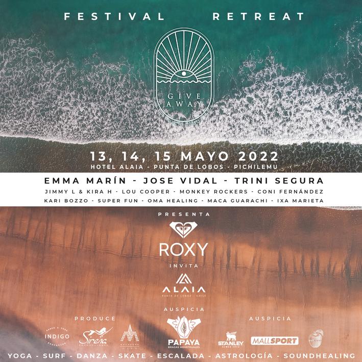 Aprender a “estar presente”; vivir de manera consciente; a integrar el cuerpo, la mente y el espíritu; a vivir el ahora; a re-aprender a estar en el cuerpo y dejar de habitar solo en nuestra mente. Esa es la vibración que se vivirá durante los 3 días en el Give Away Fest & Retreat –presentado por Roxy-, los días 13, 14 y 15 de mayo, en el Hotel Alaia, Punta Lobos (Pichilemu), que como dice su nombre, invita a darse la oportunidad de un escape, un regalo para explorar nuevos estilos de vidas, nuevas formas de movernos en el mundo, flexibilizarnos y ampliar nuestro ser.