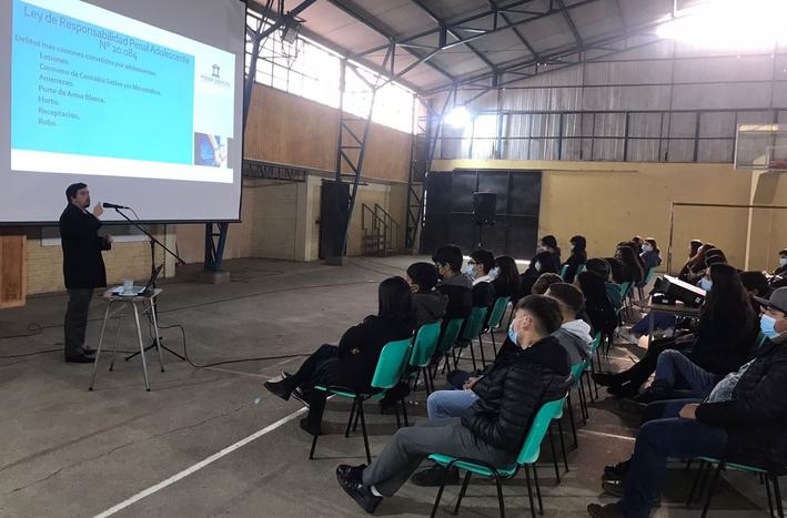 Puntualizó que en la charla también expuso de las sanciones que establece la ley 20.084 de responsabilidad penal adolescente y “Por último repasamos los delitos más comunes que cometen los adolescentes y cuáles son las sanciones que llevan aparejadas”.