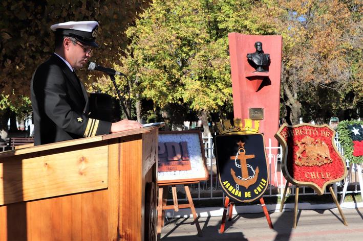 Con motivo del Día de la Glorias Navales, en la Plaza de Armas de San Fernando se efectuó la tarde del sábado la ceremonia con la que autoridades civiles, militares y de orden rindieron homenaje al 143 aniversario del Combate Naval de Iquique.