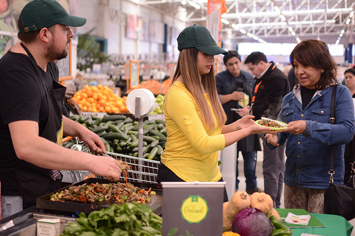 En este contexto, y para resaltar los nexos colaborativos e incentivar el consumo de hortalizas, dispusieron durante dos días de un stand en la sucursal Baquedano de la cadena, en el cual entregaron recetas de preparaciones gourmet para varias de sus producciones hortícolas, entre las que se cuentan especies menos comunes como el radiccio, Bruselas o berenjenas. Además, un chef preparó degustaciones con diversas variedades de verduras producidas por Agrogourmet, las que fueron muy bien recibidas por las personas.