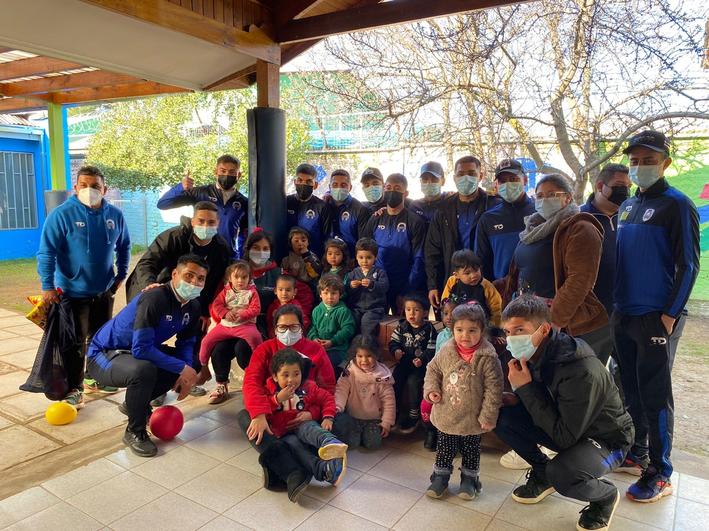 El plantel del primer equipo de Colchagua Club de Deportes se dirigió hasta la población San Hernán para visitar a los niños y niñas del Jardín Infantil de Integra “Mundo Nuevo” en el marco de la celebración del día de niño que será este domingo 7 de agosto.
