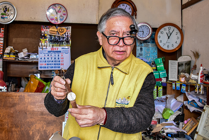 Leopoldo Fernando Rojas Ramírez ve pasar el tiempo en su relojería sin darse cuenta. Las paredes de su local están tapizadas de relojes y más relojes. Trabaja desde hace más de medio siglo arreglando relojes y despertadores de todos tipos y tamaños. "Polo", como es conocido por sus más cercanos, tiene cuerda para rato y de apoco va desgranando sus historias más queridas, mientras, en su pequeño mesón, revisa pieza por pieza, engranaje por engranaje.