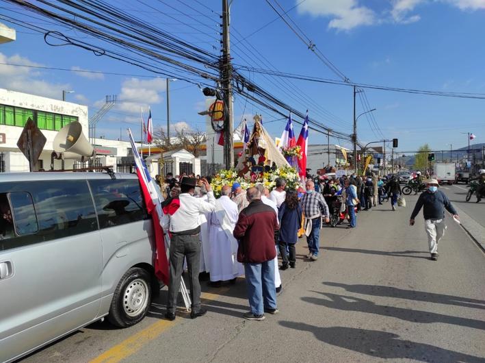 Ellos se dieron cita a las 16 horas en el frontis de la Parroquia Nuestra Señora del Carmen, ubicada en la Alameda. En el lugar junto con motivar a los presentes se bailó un pie de cueca en honor a la Virgen. El envío fue realizado por el Vicario General de la Diócesis, padre José Vergara y luego comenzó la procesión con la imagen de nuestra Madre, cuyo carro fue llevado por miembros de Ejército y fieles, en las distintas etapas del trayecto.