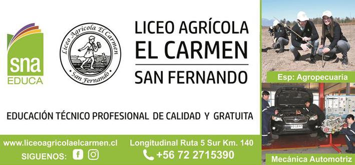 Recuerda que Liceo Agrícola El Carmen entrega carreras técnico profesionales para técnico agrícola y técnico en mecánica automotriz, si quieres saber más sobre nuestra educación visita nuestra página web o visítanos en longitudinal sur kilómetro 140 San Fernando.