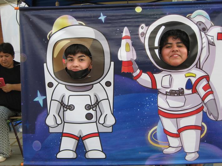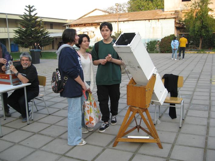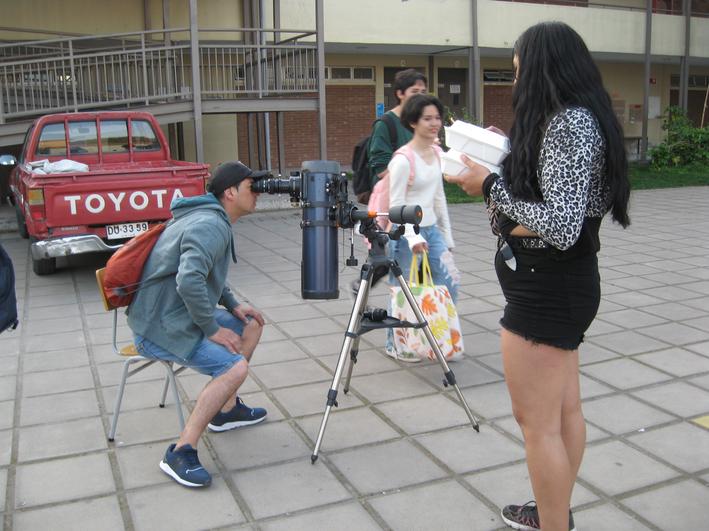 Se instaló un stand con alumnos (as) de la asignatura de Física donde se ayudó a dar respuestas a preguntas de una guía de estudio relacionada con preguntas y respuestas sobre las características e importancia de nuestro satélite natural. En forma paralela y durante todo el tiempo un grupo de jóvenes hicieron presentaciones coreográficas de combate usando espadas luminosas y vestimentas similares a las usadas en la película la Guerra de las galaxias.