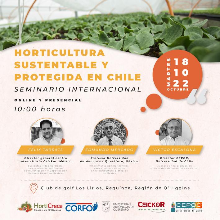 El próximo 18 de octubre, a partir de las 10:00 horas, se realizará el ‘Seminario internacional: Horticultura sustentable y protegida en Chile’; actividad convocada por el programa de Corfo O’Higgins, HortiCrece.