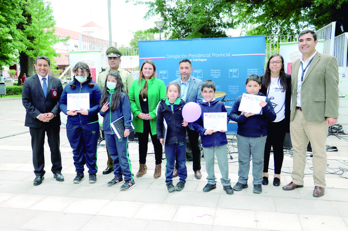 En la instancia, la Delegada Presidencial Marta Pizarro Inzunza, junto a los Prefectos de Colchagua de Carabineros, Coronel Eduardo Palma, y de la Policía de Investigaciones, Prefecto Sergio Torres, además del Coordinador Regional de Seguridad Pública Rodolfo Núñez y la Directora Provincial de Educación Andrea Mira, premiaron a las y los estudiantes destacados en un concurso literario de seguridad pública realizado para esta actividad, consistente en cuentos cortos e ilustraciones relacionadas al tema.