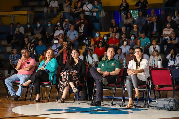 Durante la jornada matinal, el Estadio Techado congregó a unas 200 personas que escucharon las exposiciones de la seremi de Obras Públicas de O’Higgins, María de los Ángeles Latorre y el inspector fiscal de la Dirección General de Concesiones del MOP, Héctor Villacura.