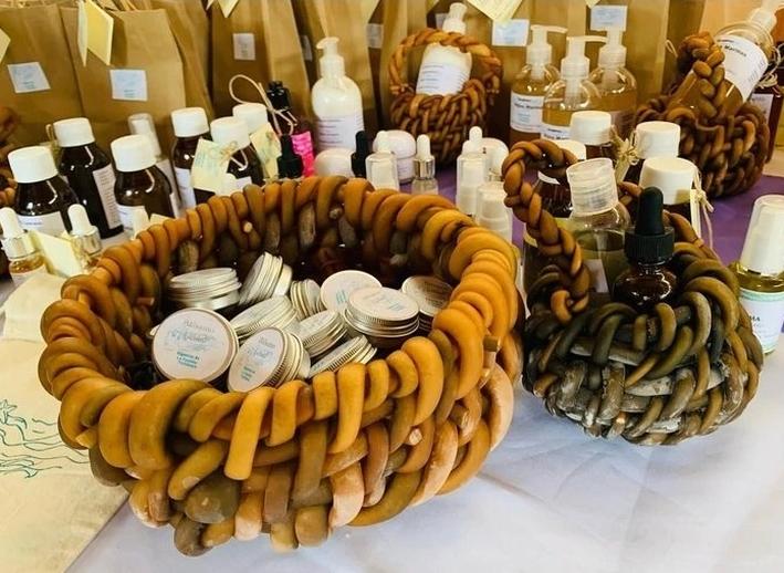 Bálsamos labiales, shampoo, aceites para masajes y cremas fueron parte de los productos a base de algas marinas que elaboraron las veinte recolectoras de orilla del Sindicato de Algueras La Puntilla de Pichilemu, en la región de O’Higgins, esto como parte del proyecto Cosmética Natural de Algas Marinas, financiado mediante el Programa Inversión Especial para Mujeres de la Pesca Artesanal del Indespa - Instituto Nacional de Desarrollo Sustentable de la Pesca Artesanal y de la Acuicultura de Pequeña Escala-.