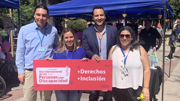 La Seremi de Desarrollo Social y Familia, Nayadeth Ahumada Herrera, junto al director regional (s) del Servicio Nacional de la Discapacidad, SENADIS, Roberto Mora Manríquez, llegaron hasta la Plaza de Los Héroes de Rancagua para conmemorar el Día Internacional de las Personas con Discapacidad.