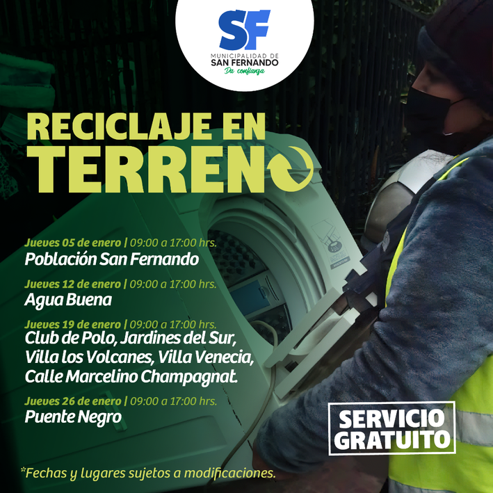 La Municipalidad de San Fernando programó para el mes de enero, los operativos de recolección de materiales en desuso, buscando fomentar el reciclaje y aportar al cuidado del medioambiente en la zona urbana y rural de la capital de Colchagua.