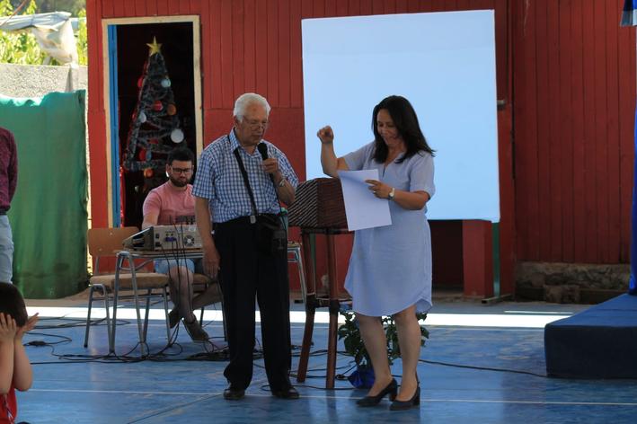 La ceremonia tuvo como invitado especial al ex director de la escuela, el querido y recordado profesor de dilatada trayectoria, Omar Benavides Toledo, quien se hizo presente llevando una gran noticia para la comunidad escolar. Se trata de la documentación de las escrituras que estaban retenidas en el Mineduc desde el año 1982 y en la cual se acredita la extensión de 4.663 metros de terreno sobre el cual está construida la actual unidad educativa.