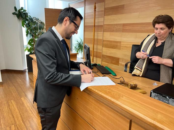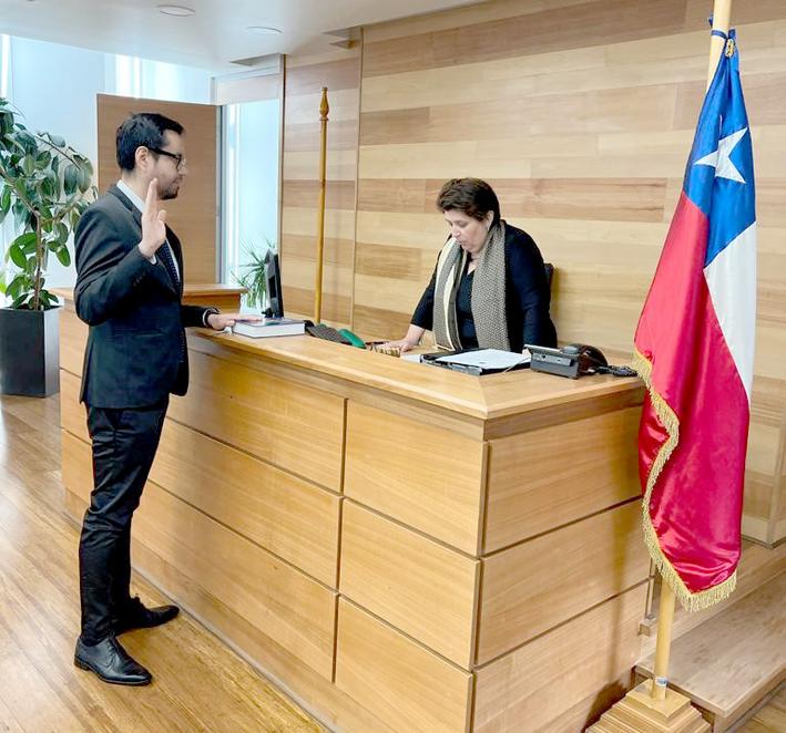 “Este es un tremendo desafío profesional, uno de los más importantes de mi carrera hasta ahora”, señaló el abogado de la Universidad de Chile y magíster en Derecho Público de esa casa de estudios, quien estuvo acompañado durante la ceremonia por funcionarios y funcionarias.