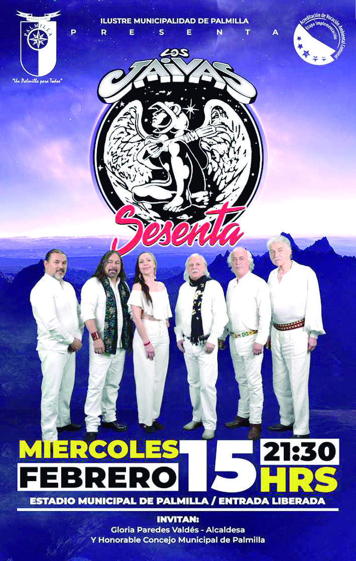 Mañana miércoles 15 de febrero, a partir de las 21 horas, en el estadio municipal de Palmilla, se baja el telón al Programa de Verano Palmilla 2023, con la presencia de Los Jaivas, celebrando sus 60 años de vida.