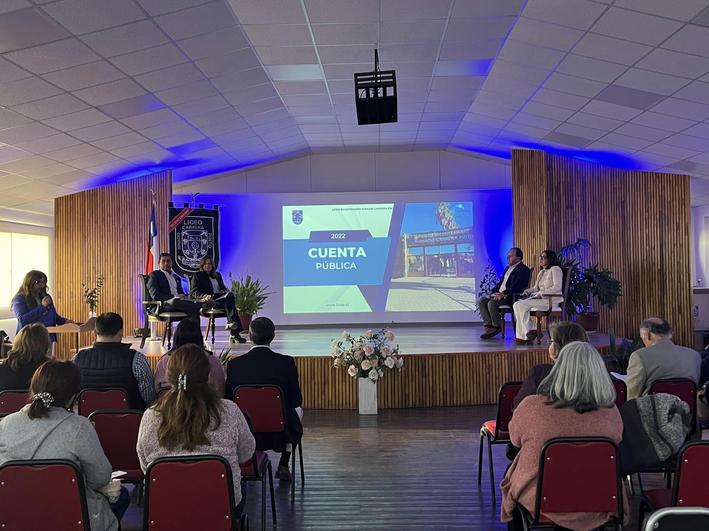 El director de establecimiento Armin Neumann Cabrera, junto a su equipo directivo dio a conocer la cuenta pública ante la presencia de autoridades comunales de educación, invitados especiales, centro de padres madres y apoderados, docentes, asistentes de la educación y de estudiantes del colegio.