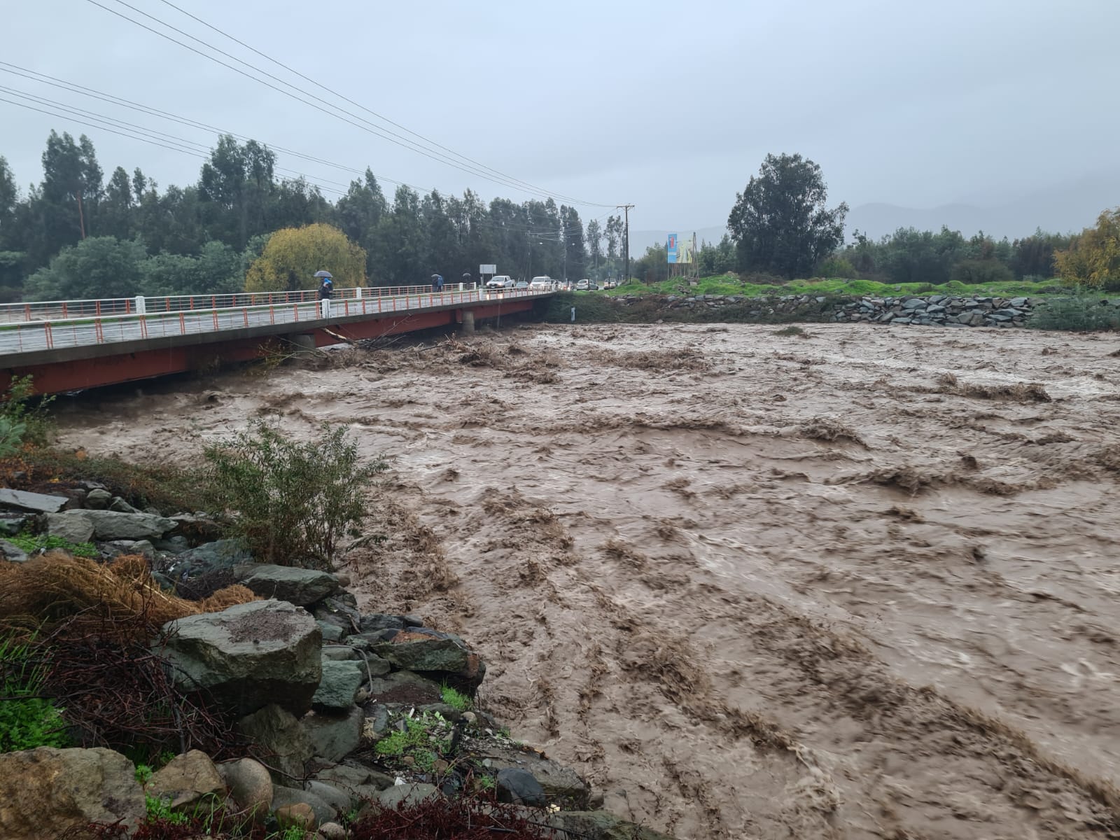 Asimismo, la Dirección General de Agua (DGA) a través de sus estaciones de monitoreo Hidrométrico, registra la crecida y aumento de caudal de los ríos Pangal, Cachapoal y Claro, en la Provincia de Cachapoal y río Tinguiririca, en la Provincia de Colchagua, lo que implica un riesgo para los asentamientos en que encuentran ubicados en las riberas de los ríos antes mencionados.