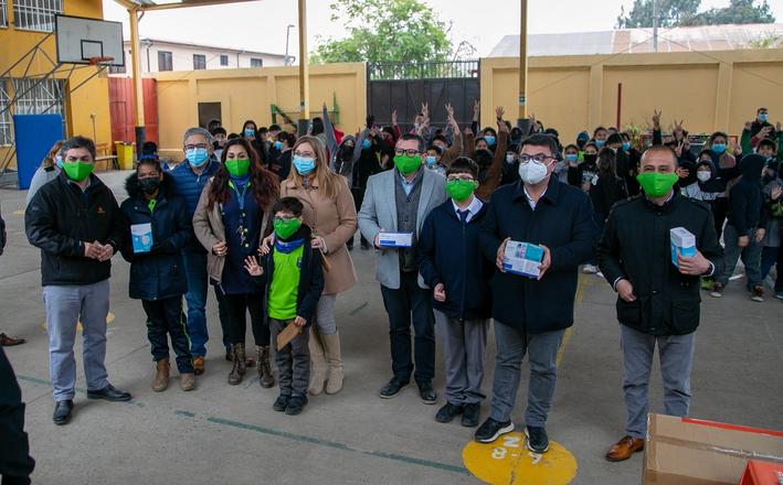 En una ceremonia que se realizó en el colegio Alberto Blest Gana, en la Población Dintrans de Rancagua, se concretó el aporte que es parte de la campaña de invierno para prevenir enfermedades respiratorias en niños y niñas escolares.
