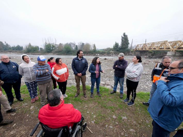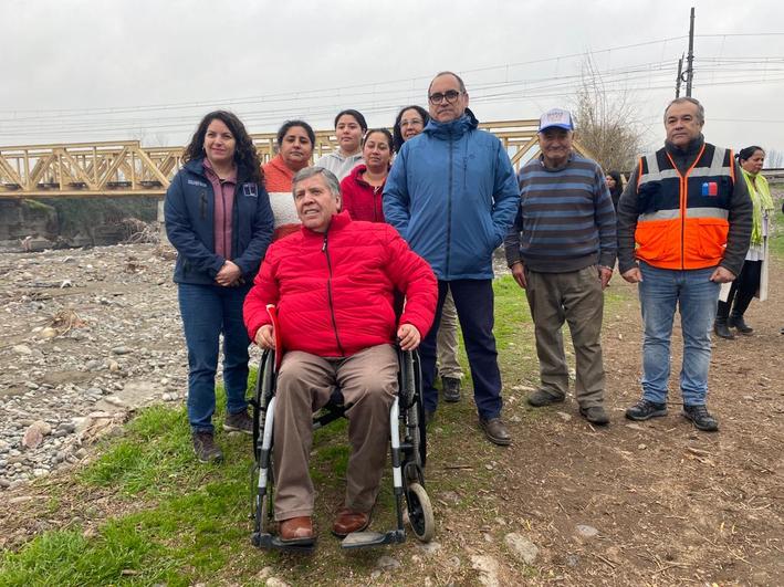 Durante su traslado a Rengo, la ministra visitó el Puente La Chimba en el sector de Río Claro de la comuna, junto a la seremi del MOP, María de los Ángeles Latorre, y dialogó con familias afectadas por el sistema frontal en el sector de Cancha Misiones de Rengo.