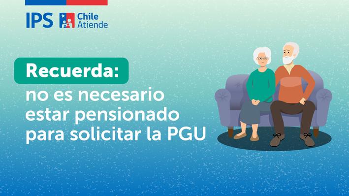 Al respecto, si la persona tiene 65 o más años y no se ha pensionado aún, puede hacer la solicitud de la PGU, incluso si se encuentra trabajando. Esto, siempre que se cumplan los demás requisitos legales, como acreditar residencia en Chile por 20 años y no integrar un grupo familiar perteneciente al 10 % más rico de la población total del país.