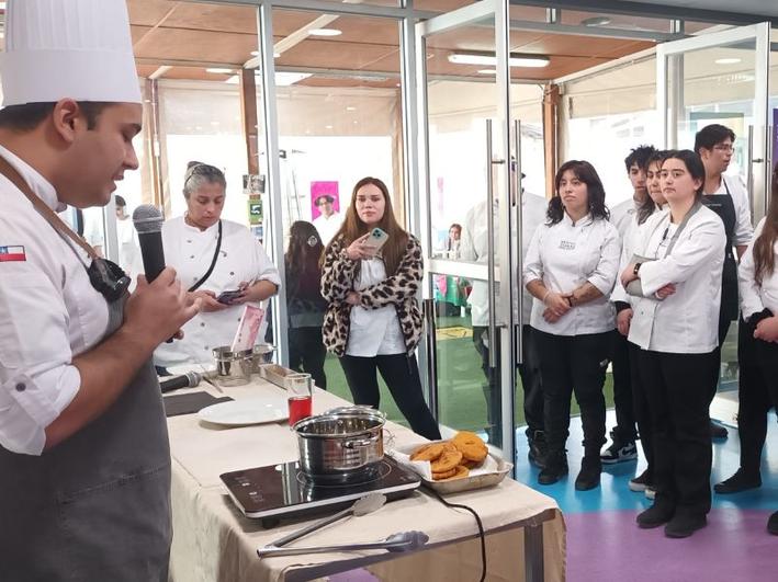 El seminario incluyó una clase en vivo, realizada por los chefs instructores de Santo Tomás Rancagua, Matías Granifo y Esteban Riffo. En la oportunidad, prepararon sopaipillas pasadas en chancaca de Chacolí y panacota de naranja rellena con gel de Chacolí, junto con helado de Chacolí con frutos rojos y gelatina de Chacolí con pimientos.