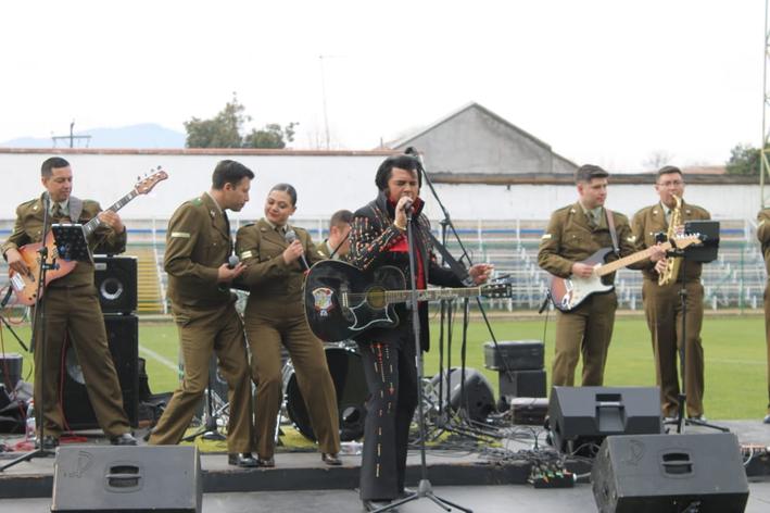 Luego de la presentación canina, hizo lo propio la banda Small Band, del Orfeón nacional de Carabineros, integrado por talentosos interpretes, como el ‘sargento Elvis’, quien sorprendió al público con las canciones del ‘Rey del Rock’.