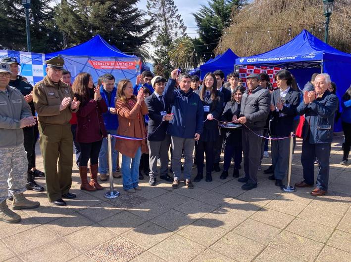 El alcalde, Marco Contreras, y comitiva municipal recorrieron los distintos stands, cada uno dispuesto para aclarar dudas e inquietudes de los y las jóvenes, que acudieron a visitar la feria vocacional 2023.