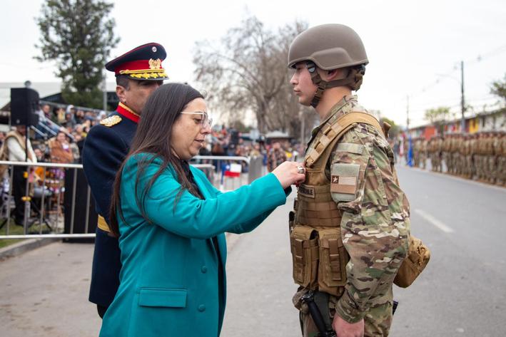 En la oportunidad la Delegada Presidencial junto al Comandante del Regimiento Colchagua procedieron a colocar la medalla 18 de septiembre al soldado conscripto Isidro Rojas Vargas.