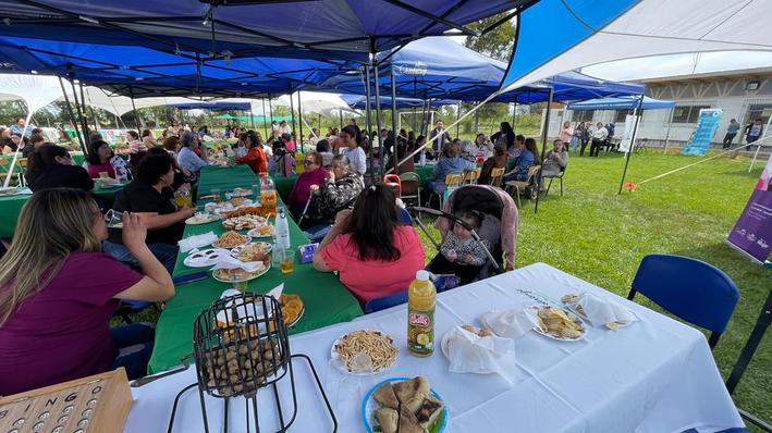 Las presentes jugaron varios bingos "cantados" por el alcalde, los concejales Alejandro Arenas, Jorge Farías y Marisol Guajardo; Juan Carlos Sandoval, administrador municipal y la directora de Desarrollo Comunitario, Ángeles Decidet.