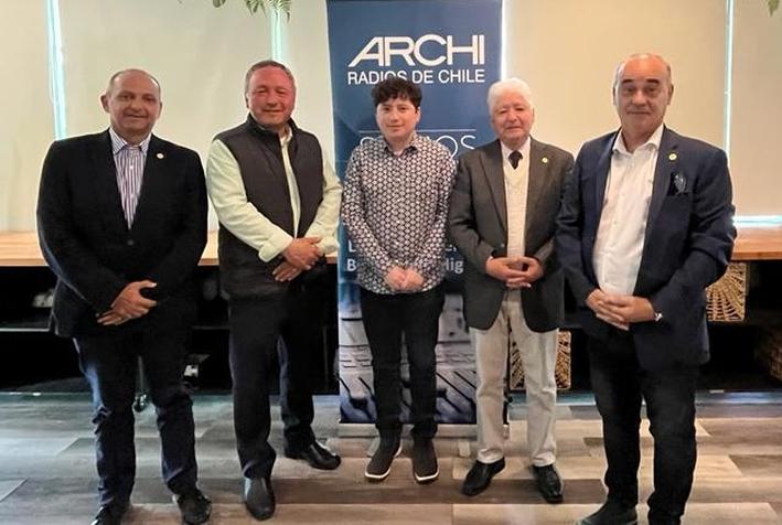 Aparecen de izquierda a derecha: Cristián Gálvez Plaza, secretario general de ARCHI; Fidel Valenzuela González, vice presidente; Ariel Valenzuela Fuenzalida, presidente electo del Sexto Comité; Juan Bernardo Avila, secretario y Eduardo Martínez Espinoza, presidente nacional del gremio de los radiodifusores.