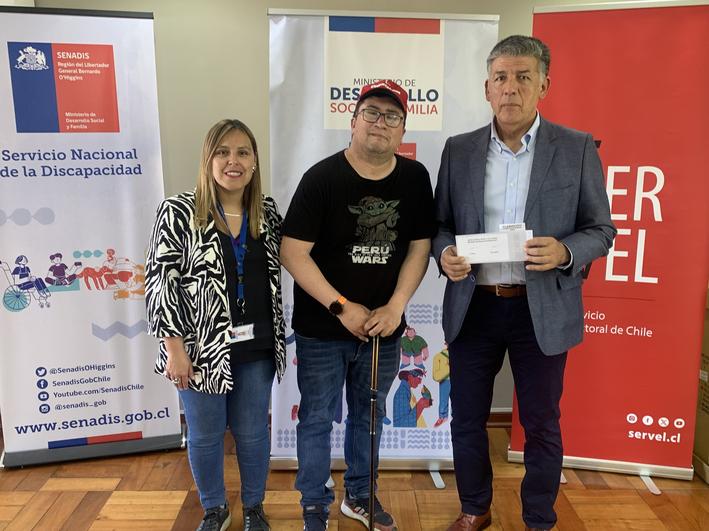 El Delegado Presidencial de O’Higgins, Fabio López Aguilera; la Seremi de Desarrollo Social y Familia, Nayadeth Ahumada y el director regional del Servicio Electoral (SERVEL), Luis Ávila, reforzaron las medidas dispuestas para la participación de las personas con discapacidad, en el Plebiscito Constitucional 2023 de este domingo 17 de diciembre.
