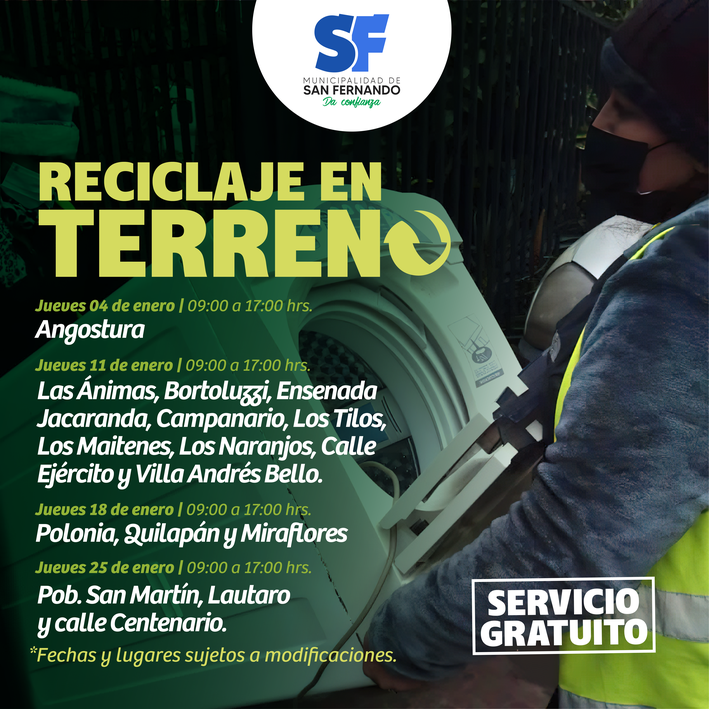 La Municipalidad de San Fernando programó para el mes de enero 2024 una serie de operativos de recolección de materiales en desuso, buscando fomentar el reciclaje y aportar al cuidado del medioambiente en las zonas urbanas y rurales de la capital de Colchagua.