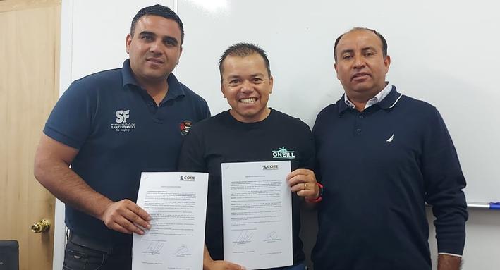 En la imagen Rodrigo Lobos Piña, encargado Seguridad Pública, Municipalidad San Fernando, junto a Patricio Flores Retamales, presidente junta de vecinos y Gonzalo Martínez González, Contratista.