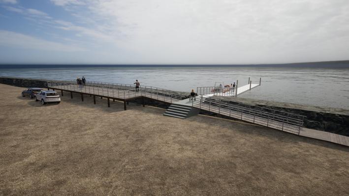 El embarcadero turístico, por su parte, tiene un presupuesto de $695 millones, y considera una escollera, un pontón flotante, una pasarela basculante, una base de hormigón y una plataforma deck-mirador. Con esto, se buscará potenciar al turismo de la zona, sector altamente productivo.