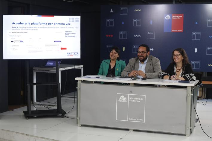 El ministro Nicolás Cataldo y la subsecretaria Alejandra Arratia presentaron la nueva plataforma, que permite a las familias que aún no tengan cupos para sus hijos en algún establecimiento, puedan pedir uno inscribiéndose en listas de espera virtuales, sin ir presencialmente a estos.