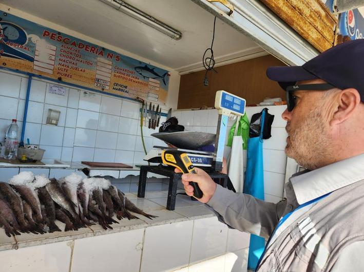 El recorrido de la Autoridad Sanitaria se basó principalmente en la medición de temperaturas de los productos. Además, se inspeccionaron las características físico-organolépticas, como el aspecto general del pescado que está relacionado con la pigmentación bien definida, mucosidad cutánea escasa, transparente e incolora o ligeramente opaca.