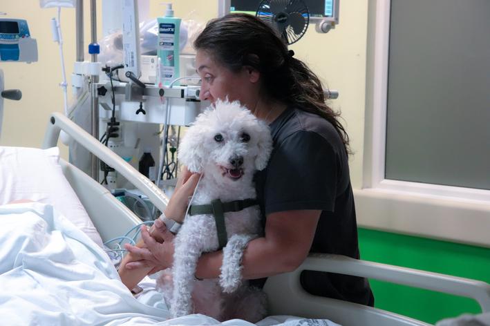 Johana Castro, dueña de la mascota visitante, expresó que “decidimos traer a Copito al hospital para que viera a Enrique, que ya sobrepasó el mes de hospitalización por complicaciones del síndrome de Guillain Barré que tiene, porque sabemos que ambos se extrañaban mucho, ya que el perrito es un hijo más en la familia que lo acompañaba en todo momento, pero, por sobre todo, porque sabemos que Copo puede favorecer su recuperación y motivarlo a que siga adelante para volver a la casa”.