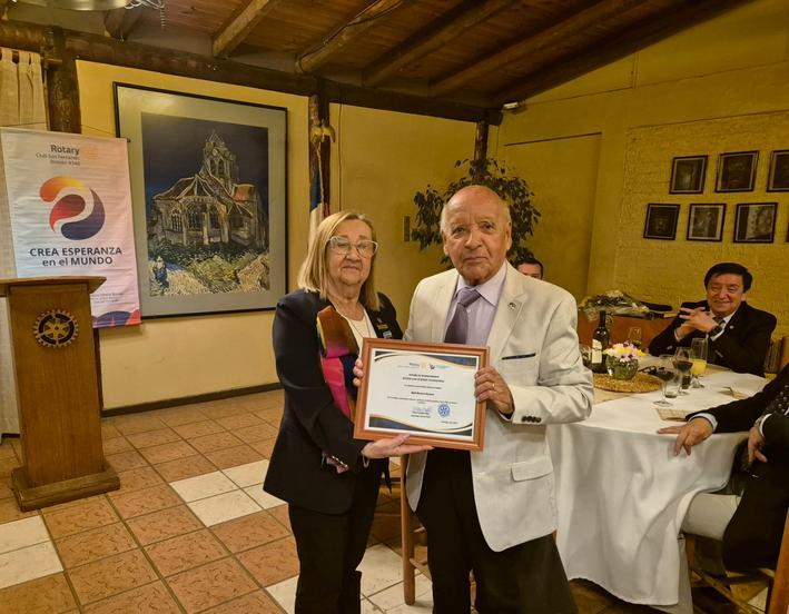 El homenaje lo encabezó la gobernadora del distrito 4340, Vilma Troncoso Trapp, la cual le hizo entrega de un diploma de reconocimiento por sus 64 años ligados a la institución.