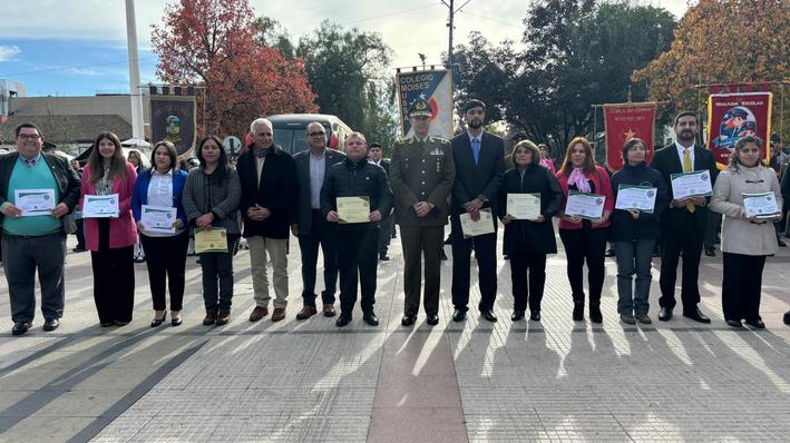 Tras el Juramento, los docentes encargados de las brigadas escolares fueron reconocidos por el Prefecto Cachapoal, Coronel Nibaldo Sánchez Cabrera, a quienes les entregó un diploma.