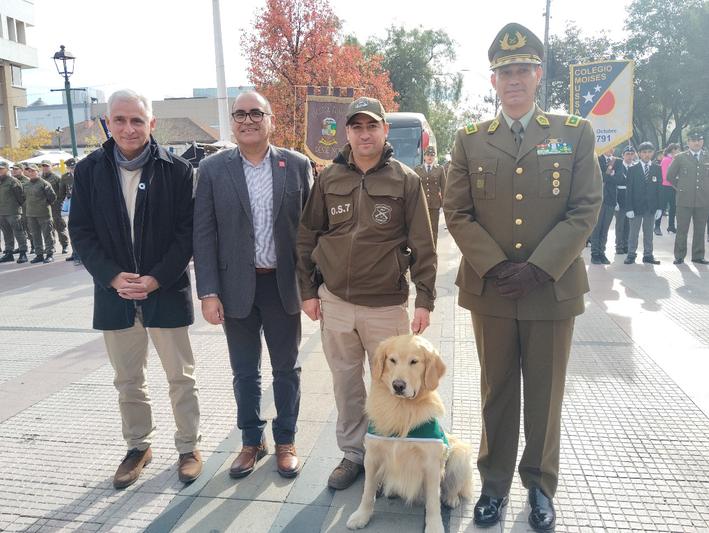 “Gazam”, el can del Emblema Verde, junto a su guía el Sargento 2° Rodrigo Ibacache Castro, de dotación de la Sección OS-7 Cachapoal, fueron reconocidos por el Delegado Presidencial, Fabio López Aguilera, por su labor policial.