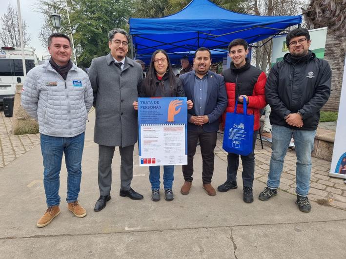 En el marco de la conmemoración del día Mundial contra la Trata de Personas, el pasado martes 30 de julio, en la plaza de armas de la comuna de Placilla, se realizó un operativo dedicado a concientizar en la comunidad sobre este delito, frecuente en la población migrante en nuestro país dedicada al trabajo agrícola, especialmente en mujeres, niñas, niños y adolescentes.