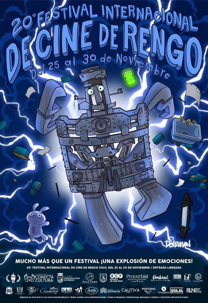 El Festival Internacional de Cine de Rengo FECIR, en su 20ª edición, se complace en anunciar la presentación de su afiche oficial 2024, diseñado por el destacado animador y director australiano Bernard Derriman. Reconocido mundialmente por su trabajo en la premiada serie animada “Bob's Burgers" y por co-dirigir "The Bob's Burgers Movie", Derriman aporta su estilo único y creativo al festival, consolidando su relevancia en la escena cinematográfica internacional.