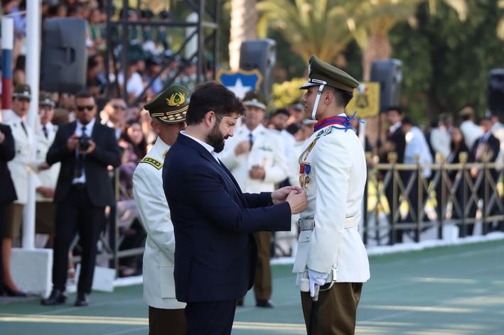 Esta solemne ceremonia fue encabezada por el Presidente de la República, Gabriel Boric Font, quien estuvo acompañado por la Ministra del Interior y Seguridad Pública, Carolina Tohá Morales; y el General Director de Carabineros, Marcelo Araya Zapata, además de integrantes del Alto Mando de la institución, invitados especiales y tanto padres como apoderados de los nuevos oficiales.