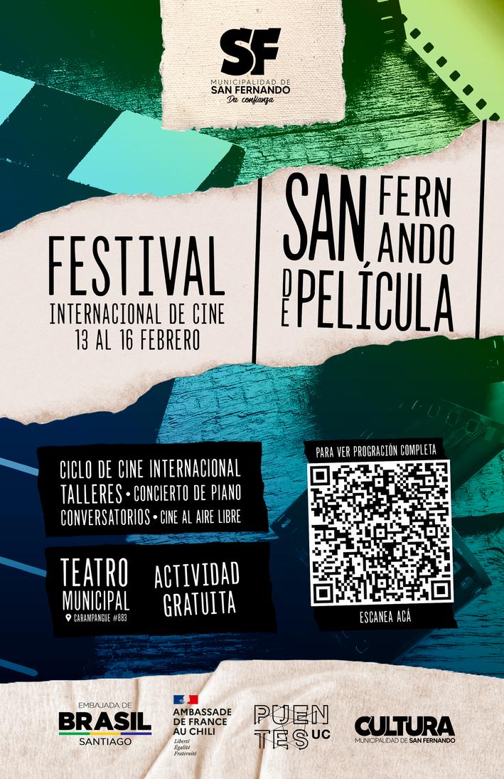 Cuatro días de cine darán vida al Primer Festival Internacional de Cine “San Fernando de Película”, un evento impulsado por la Municipalidad de San Fernando, en colaboración con las embajadas de Brasil y Francia en Chile y el Centro de Políticas Públicas UC, para fomentar la cultura y el acceso al séptimo arte en la comunidad. En esta primera edición, el festival reconocerá a grandes figuras del cine chileno, destacando la trayectoria de Paulina Urrutia, Tamara Acosta y Pedro Sienna.