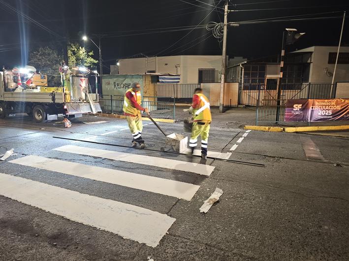 Como parte de estas acciones, se está ejecutando un plan de demarcación vial que contempla la aplicación de más de 5.600 m² de pintura termoplástica para mejorar pasos peatonales y señalización en la comuna. Esta intervención se enfoca especialmente en las inmediaciones de colegios, liceos, jardines infantiles y centros de salud, con el objetivo de reforzar la seguridad de peatones y conductores.