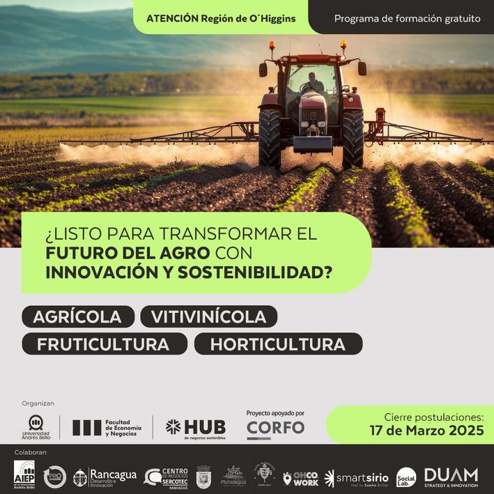 Con el lanzamiento de “O´Higgins Emerge”, la Universidad Andrés Bello apuesta por la formación de emprendedores del sector agrícola, ganadero y de servicios de la región entregándoles herramientas clave para integrar la sostenibilidad en sus negocios y fortalecer la economía regional.